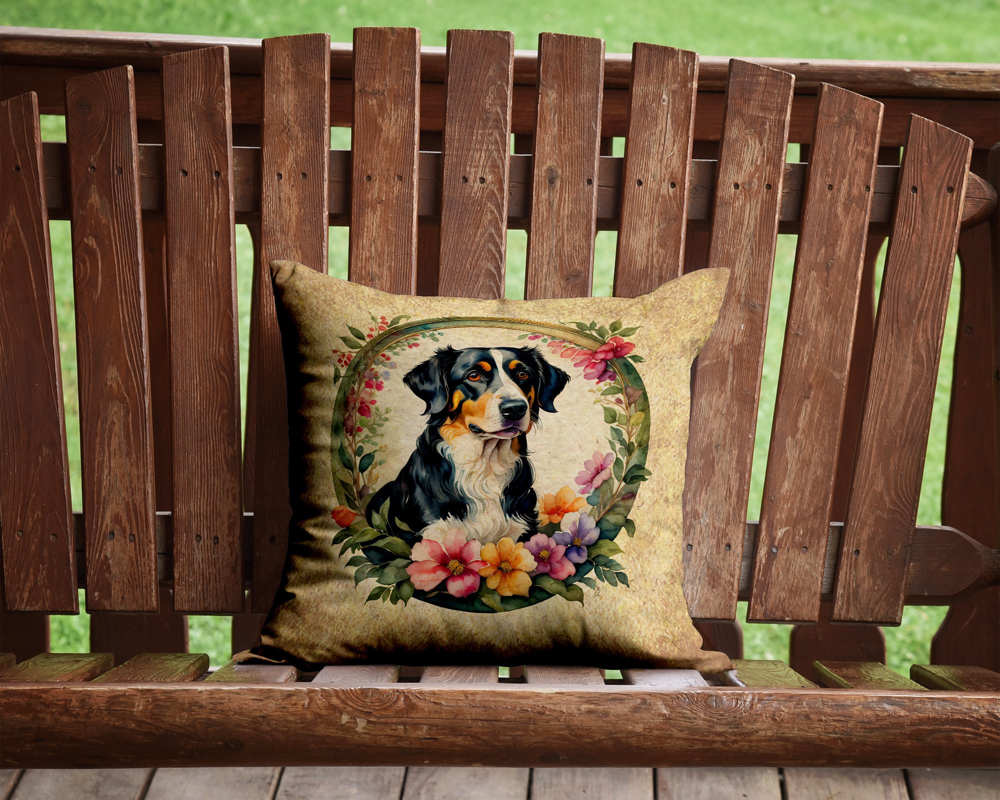 Home > Appenzeller Sennenhund and Flowers Throw Pillow Machine Washable, Indoor Outdoor Decorative Pillow for Couch, Bed or Patio, 14Hx14W