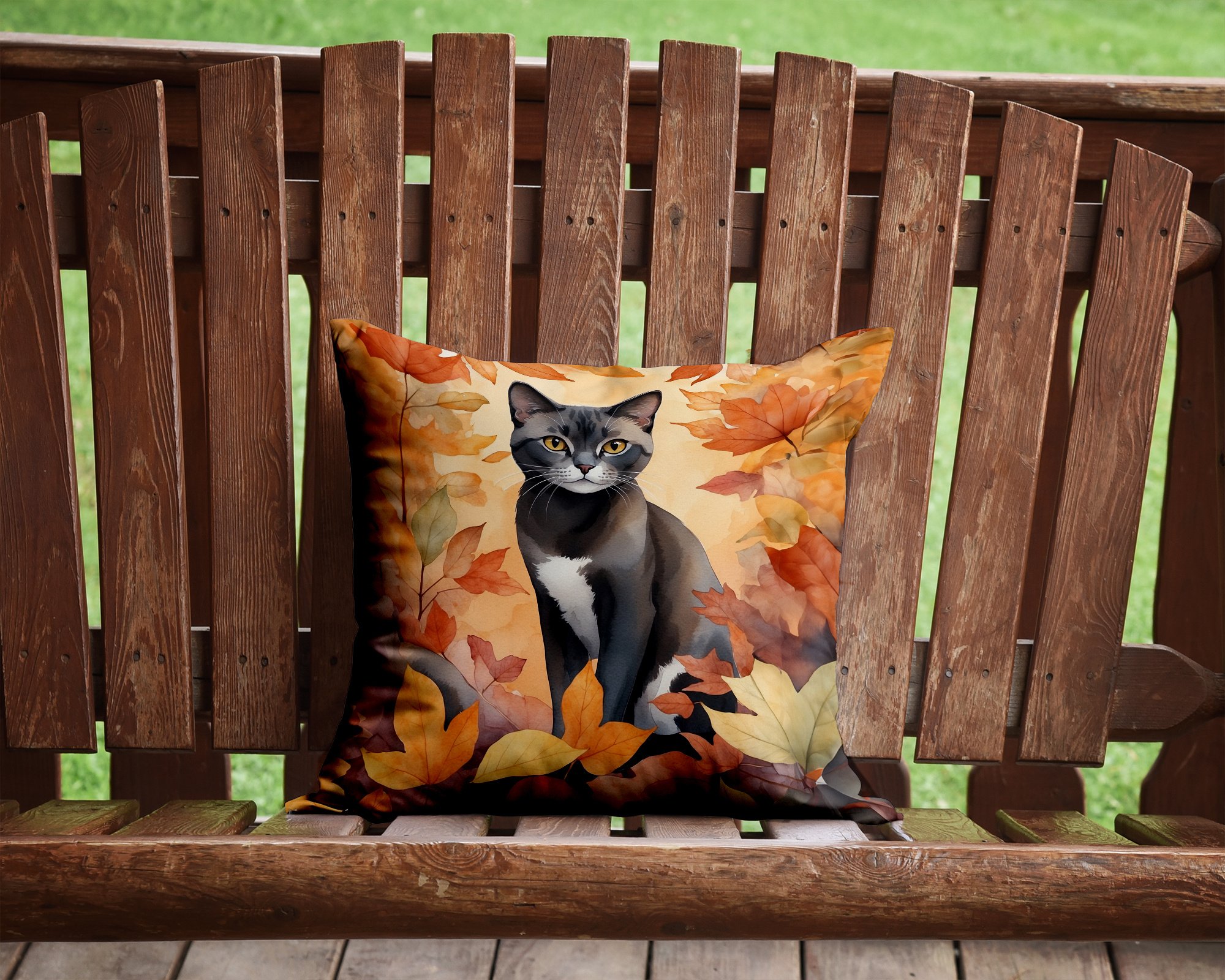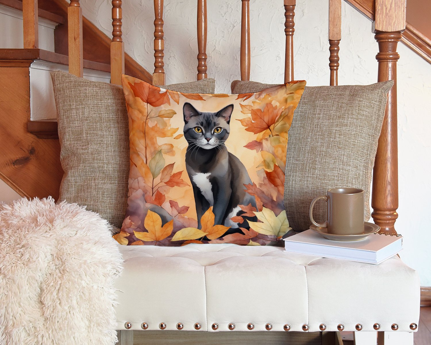 Asian Cat in Fall Leaves Throw Pillow Machine Washable, Indoor Outdoor Decorative Pillow for Couch, Bed or Patio, 14Hx14W
