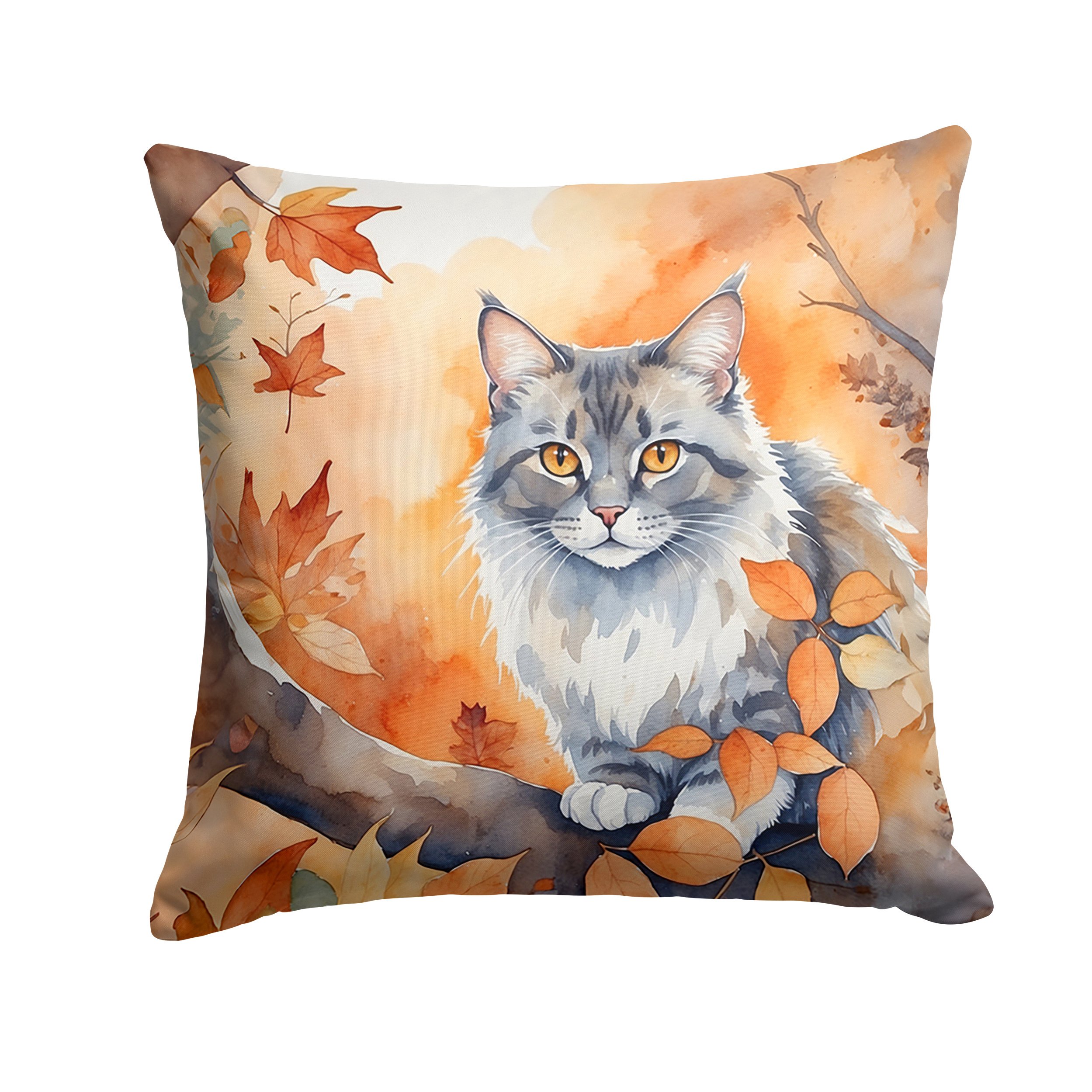 Australian Mist Cat in Fall Leaves Throw Pillow Machine Washable, Indoor Outdoor Decorative Pillow for Couch, Bed or Patio, 18Hx18W