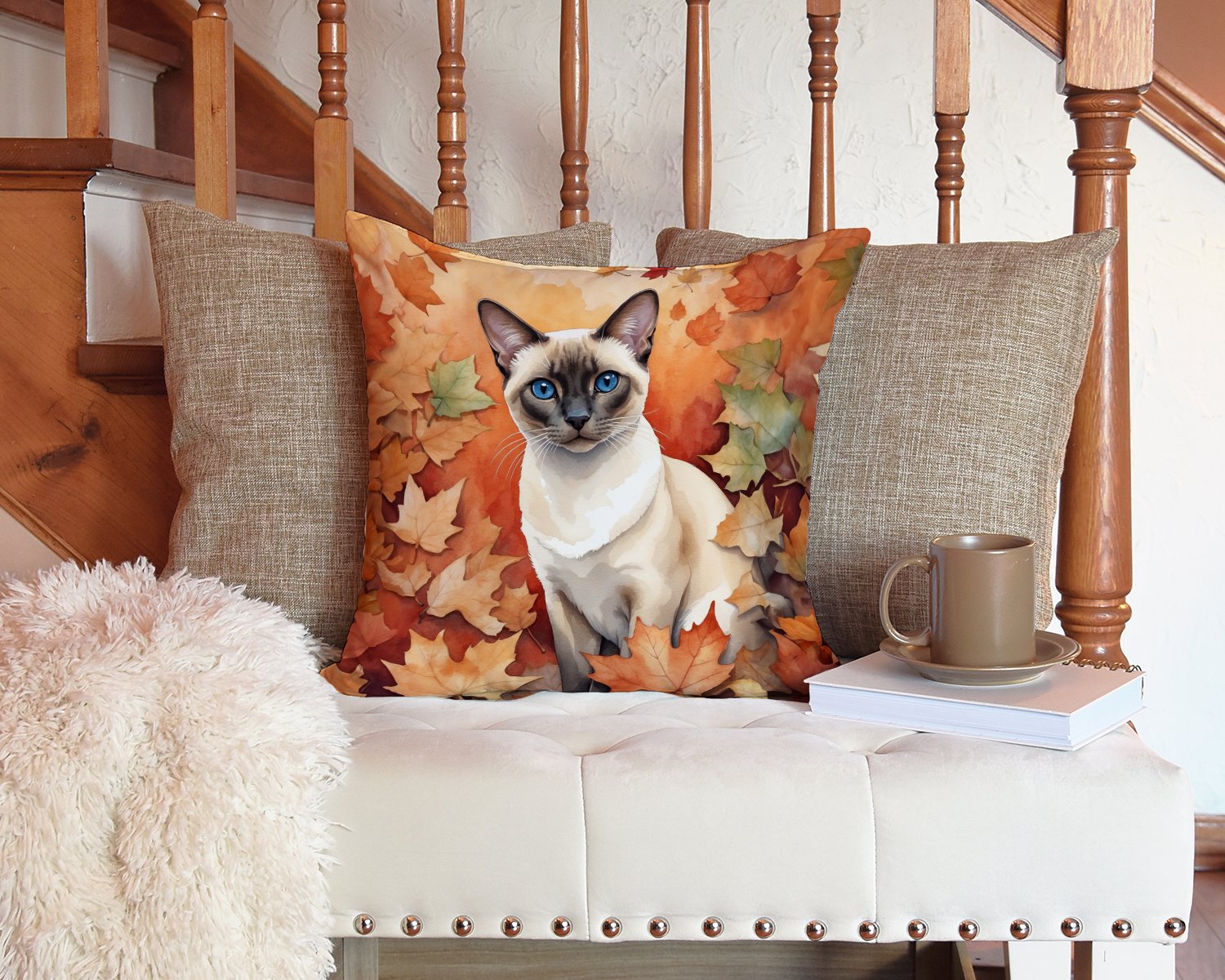 Home > Colorpoint Shorthair Cat in Fall Leaves Throw Pillow Machine Washable, Indoor Outdoor Decorative Pillow for Couch, Bed or Patio, 14Hx14W