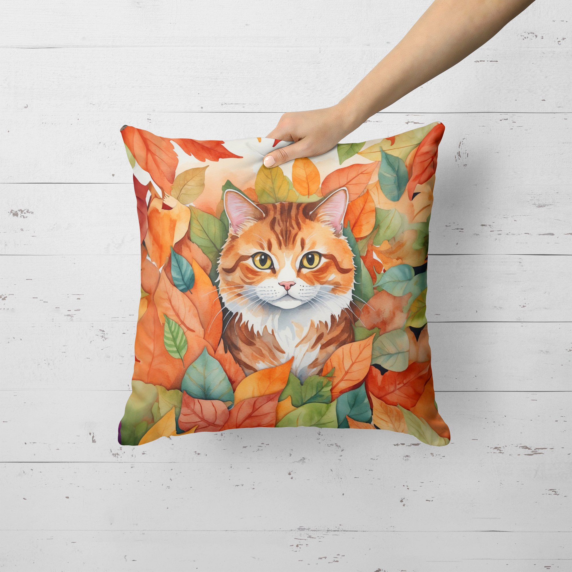 Foldex Exotic Fold Cat in Fall Leaves Throw Pillow Machine Washable, Indoor Outdoor Decorative Pillow for Couch, Bed or Patio, 18Hx18W