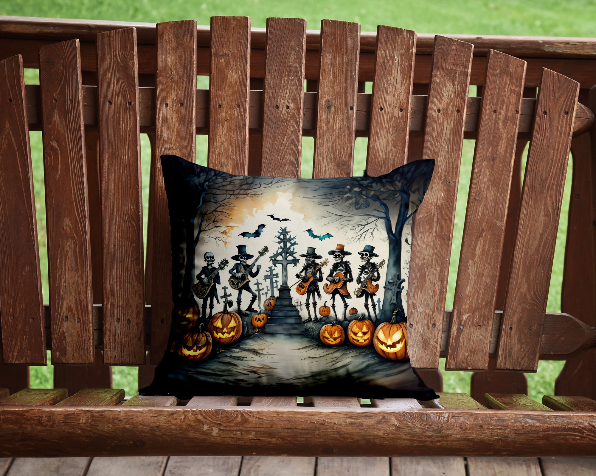 Mariachi Skeleton Band Spooky Halloween Throw Pillow Machine Washable, Indoor Outdoor Decorative Pillow for Couch, Bed or Patio, 14Hx14W