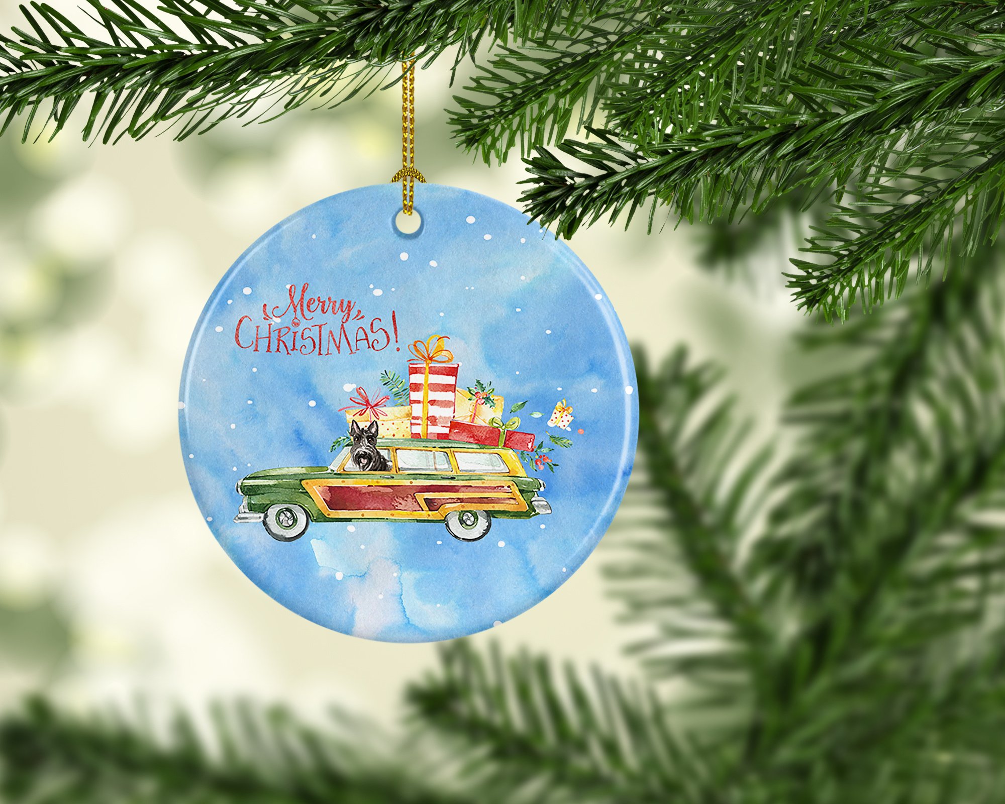 Ceramic Ornament featuring breed specific Scottish Terrier artwork. Celebrate Christmas with this Christmas Ornament. This Ceramic Ornament is from Caroline's Treasures collection Merry Christmas. Add a touch of personalized charm to your Christmas tree this holiday season with our Ceramic Ornament. Measuring 2.8125 inches in diameter, this round porcelain ornament beautifully reflects your festive lights, enhancing your holiday decor. The gloss surface sets off the vibrant, full-color artwork contributed by one of our talented artists, bringing a pop of color and joy to your tree. This Ceramic Ornament doesn't stop at being merely decorative. The white back is designed for personalization. Write a heartfelt message, mark a special year, or inscribe a date with a paint pen or a permanent marker to create a treasured memento. Please ensure you allow any personalization to dry thoroughly before handling to maintain the pristine finish. Included with the ornament is a delicate gold cord for easy hanging. Made in the USA, this Ceramic Ornament makes an exceptional gift for a pet sitter, teacher, family member, or anyone you wish to share a little Christmas magic with. With its blend of style, charm, and personal touch, it's a meaningful addition to any Christmas tree. This Ornament is from Caroline's Treasures Dogs category of products.