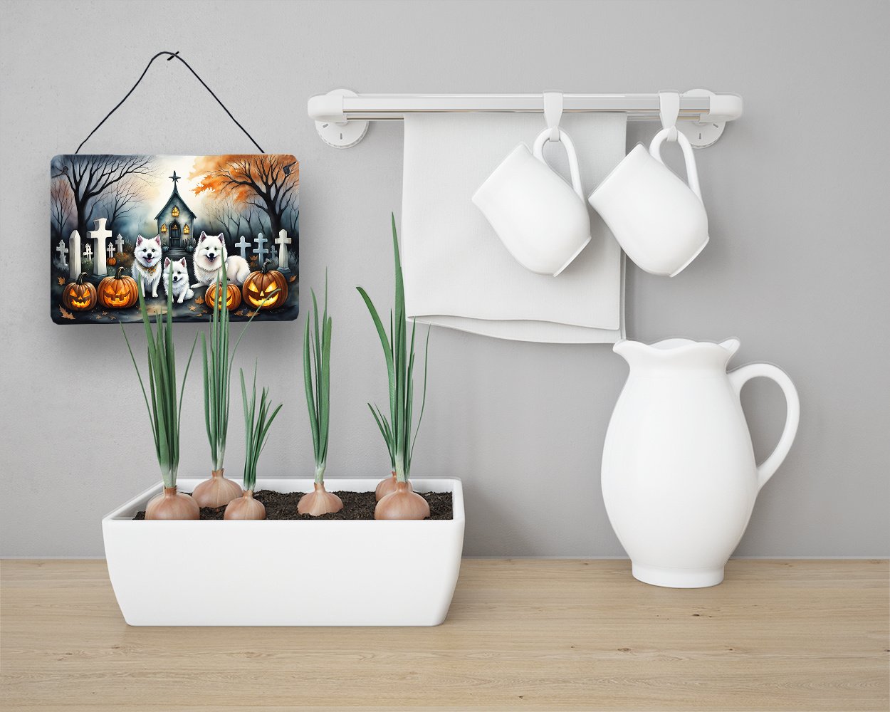 NEW American Eskimo Spooky Halloween Wall or Door Hanging Prints Aluminum Metal Sign Kitchen Wall Bar Bathroom Plaque Home Decor, 8HX12W, Multicolor