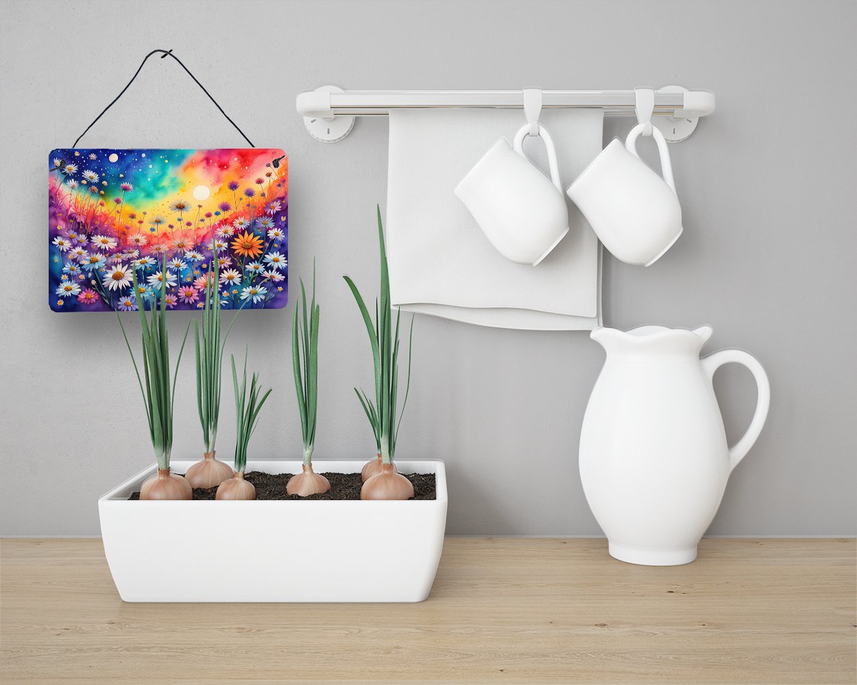 NEW Asters in Color Wall or Door Hanging Prints Aluminum Metal Sign Kitchen Wall Bar Bathroom Plaque Home Decor, 8HX12W, Multicolor