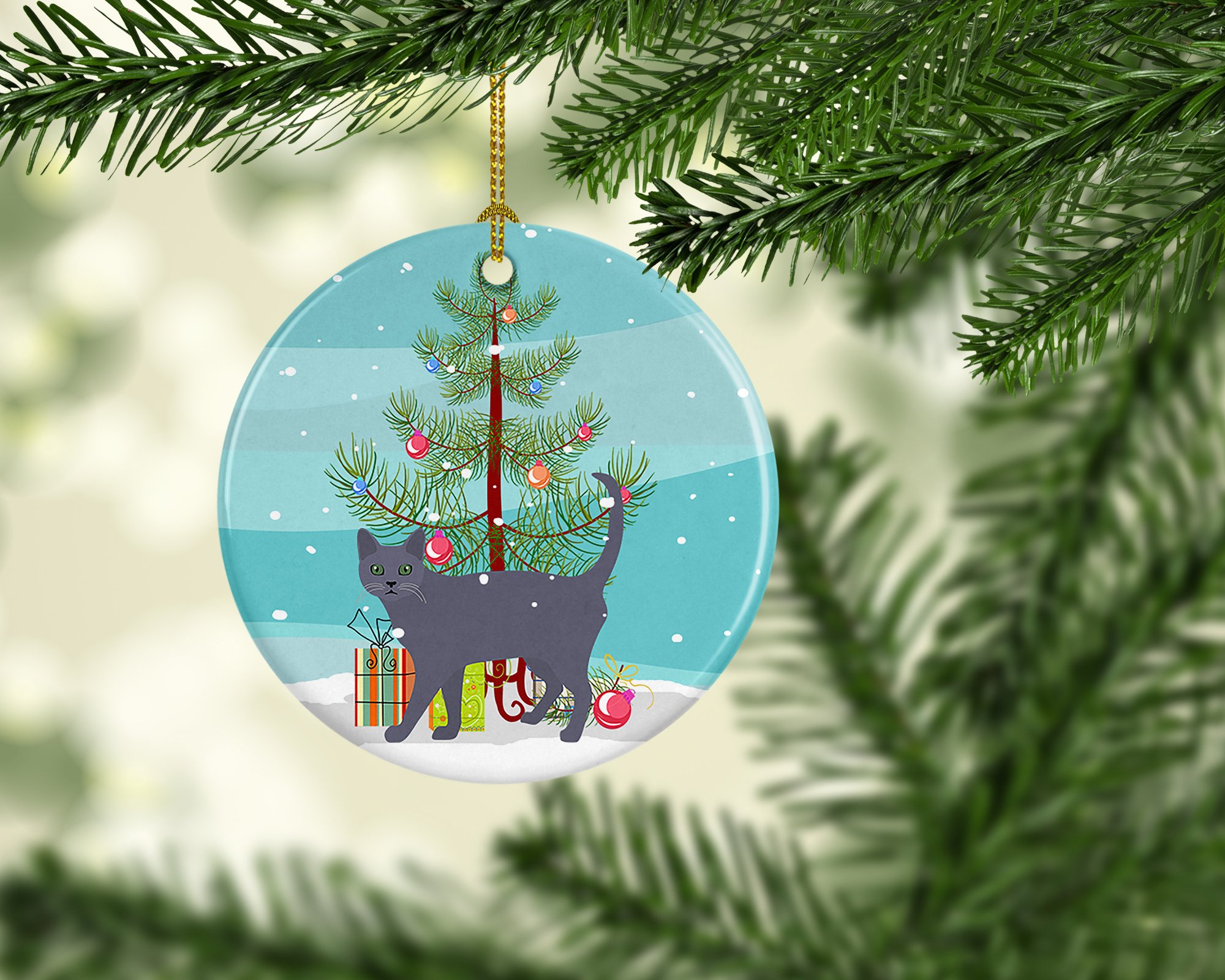 Ceramic Ornament featuring breed specific Korat artwork. Celebrate Christmas with this Christmas Ornament. This Ceramic Ornament is from Caroline's Treasures collection Merry Christmas Tree. Add a touch of personalized charm to your Christmas tree this holiday season with our Ceramic Ornament. Measuring 2.8125 inches in diameter, this round porcelain ornament beautifully reflects your festive lights, enhancing your holiday decor. The gloss surface sets off the vibrant, full-color artwork contributed by one of our talented artists, bringing a pop of color and joy to your tree. This Ceramic Ornament doesn't stop at being merely decorative. The white back is designed for personalization. Write a heartfelt message, mark a special year, or inscribe a date with a paint pen or a permanent marker to create a treasured memento. Please ensure you allow any personalization to dry thoroughly before handling to maintain the pristine finish. Included with the ornament is a delicate gold cord for easy hanging. Made in the USA, this Ceramic Ornament makes an exceptional gift for a pet sitter, teacher, family member, or anyone you wish to share a little Christmas magic with. With its blend of style, charm, and personal touch, it's a meaningful addition to any Christmas tree. This Ornament is from Caroline's Treasures Cats category of products.