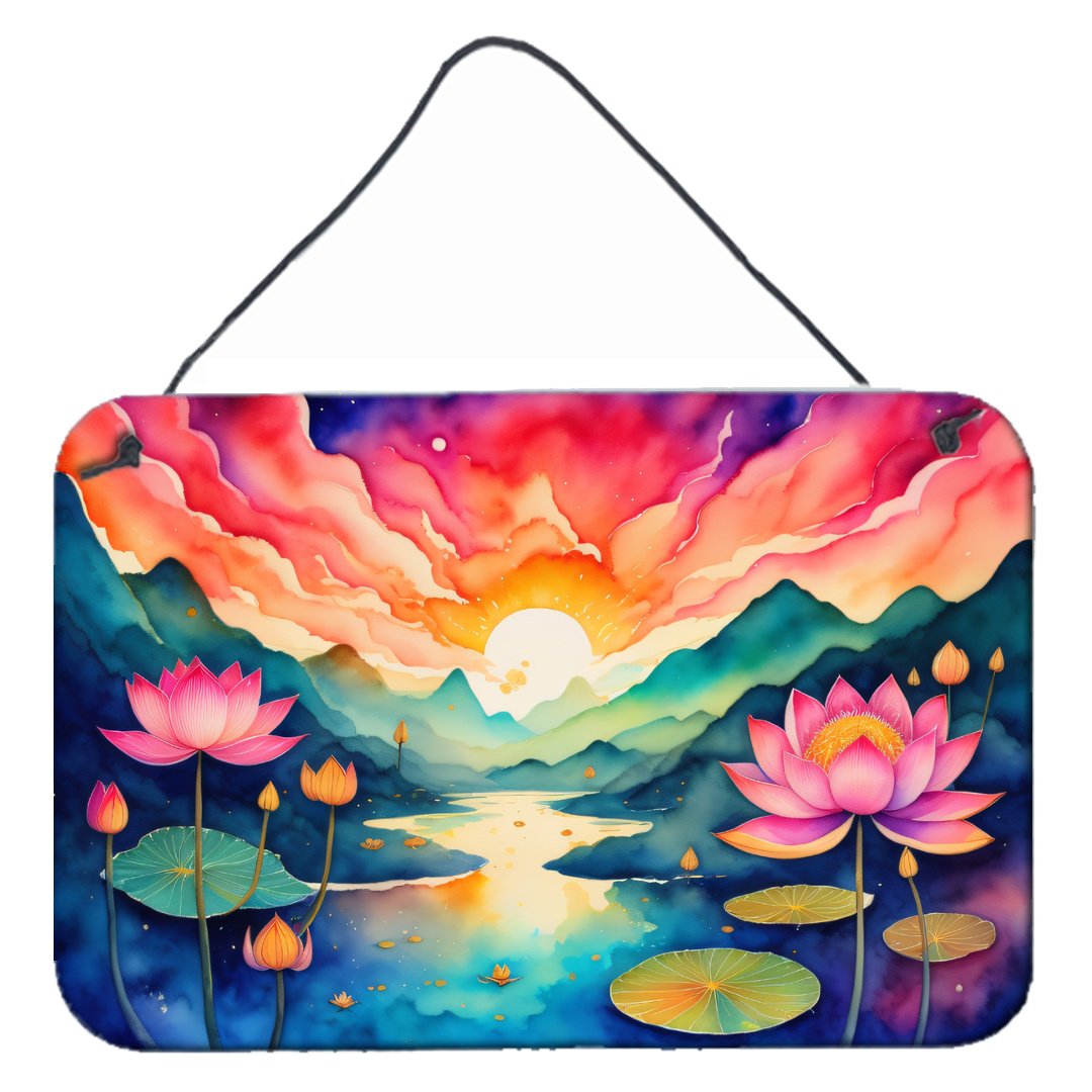 NEW Lotus in Color Wall or Door Hanging Prints Aluminum Metal Sign Kitchen Wall Bar Bathroom Plaque Home Decor, 8HX12W, Multicolor
