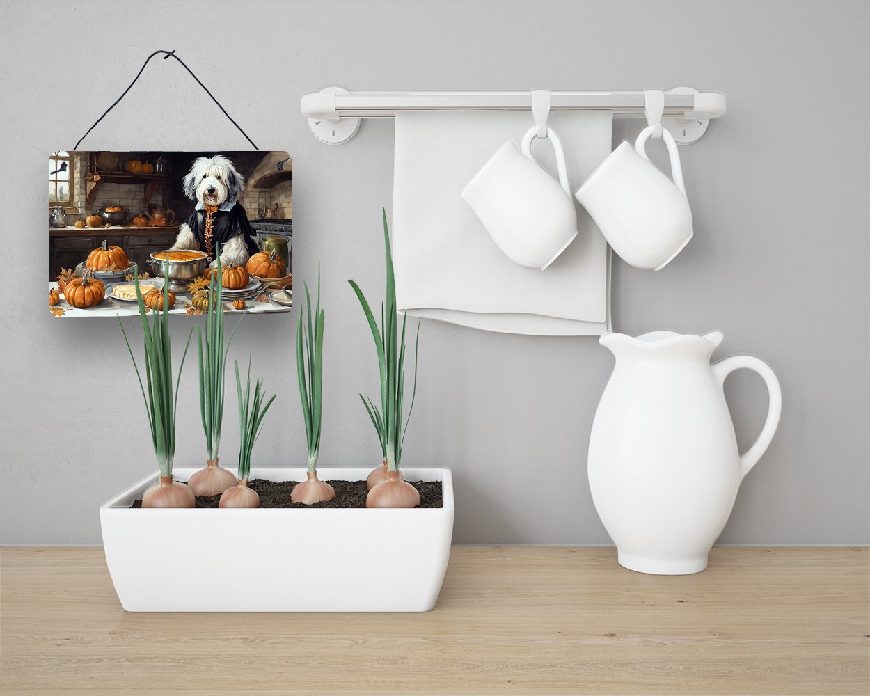 Home > NEW Old English Sheepdog Fall Kitchen Pumpkins Wall or Door Hanging Prints Aluminum Metal Sign Kitchen Wall Bar Bathroom Plaque Home Decor, 8HX12W