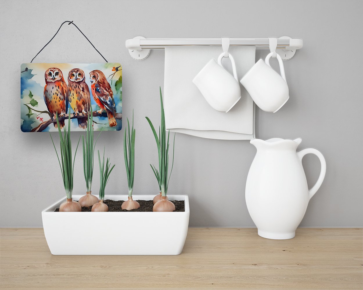 NEW Owls Wall or Door Hanging Prints Aluminum Metal Sign Kitchen Wall Bar Bathroom Plaque Home Decor, 8HX12W, Multicolor