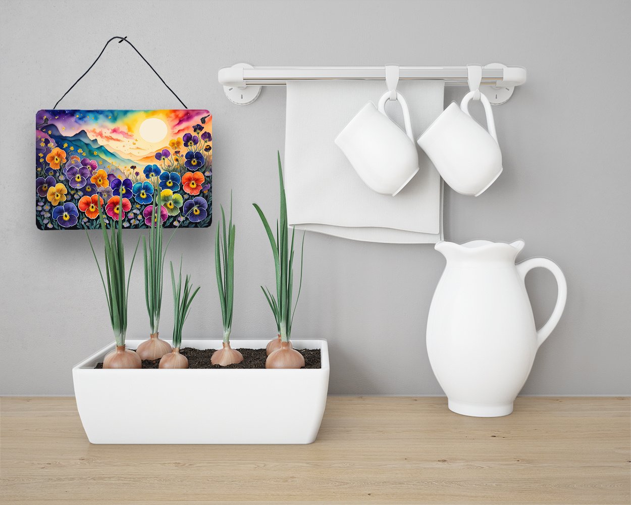 NEW Pansies in Color Wall or Door Hanging Prints Aluminum Metal Sign Kitchen Wall Bar Bathroom Plaque Home Decor, 8HX12W, Multicolor