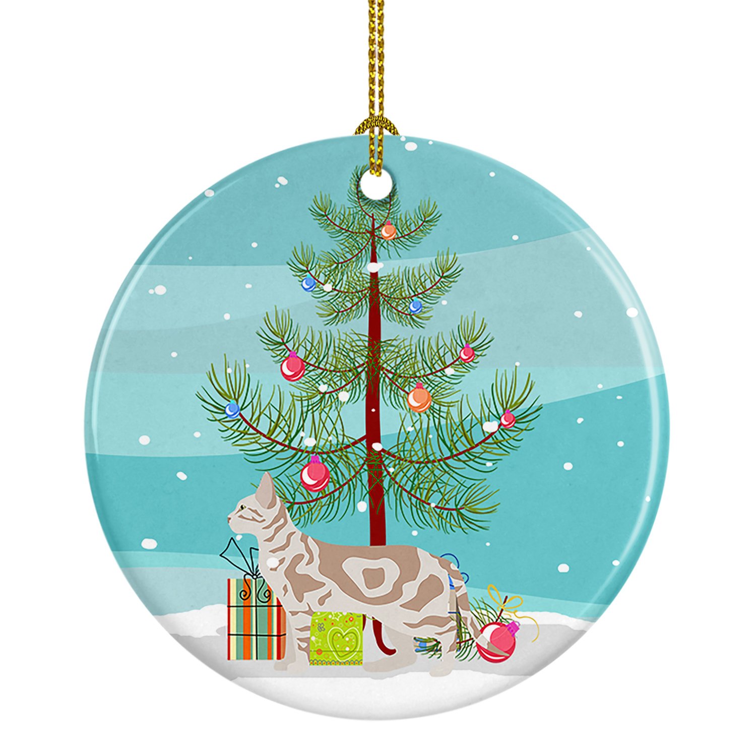 Ceramic Ornament featuring breed specific Sokoke artwork. Celebrate Christmas with this Christmas Ornament. This Ceramic Ornament is from Caroline's Treasures collection Merry Christmas Tree. Add a touch of personalized charm to your Christmas tree this holiday season with our Ceramic Ornament. Measuring 2.8125 inches in diameter, this round porcelain ornament beautifully reflects your festive lights, enhancing your holiday decor. The gloss surface sets off the vibrant, full-color artwork contributed by one of our talented artists, bringing a pop of color and joy to your tree. This Ceramic Ornament doesn't stop at being merely decorative. The white back is designed for personalization. Write a heartfelt message, mark a special year, or inscribe a date with a paint pen or a permanent marker to create a treasured memento. Please ensure you allow any personalization to dry thoroughly before handling to maintain the pristine finish. Included with the ornament is a delicate gold cord for easy hanging. Made in the USA, this Ceramic Ornament makes an exceptional gift for a pet sitter, teacher, family member, or anyone you wish to share a little Christmas magic with. With its blend of style, charm, and personal touch, it's a meaningful addition to any Christmas tree. This Ornament is from Caroline's Treasures Cats category of products.