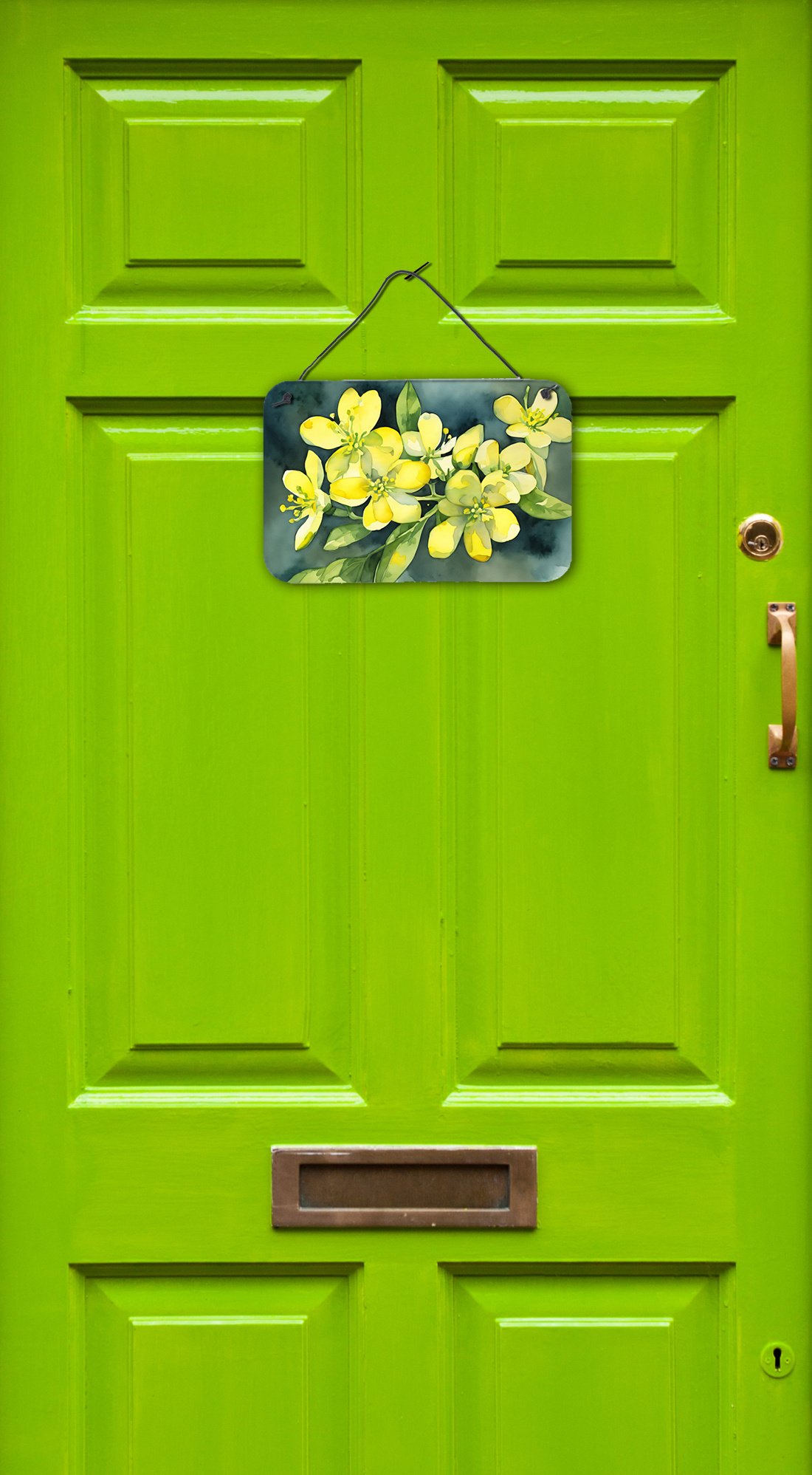 NEW South Carolina Yellow Jessamine in Watercolor Wall or Door Hanging Prints Aluminum Metal Sign Kitchen Wall Bar Bathroom Plaque Home Decor, 8HX12W