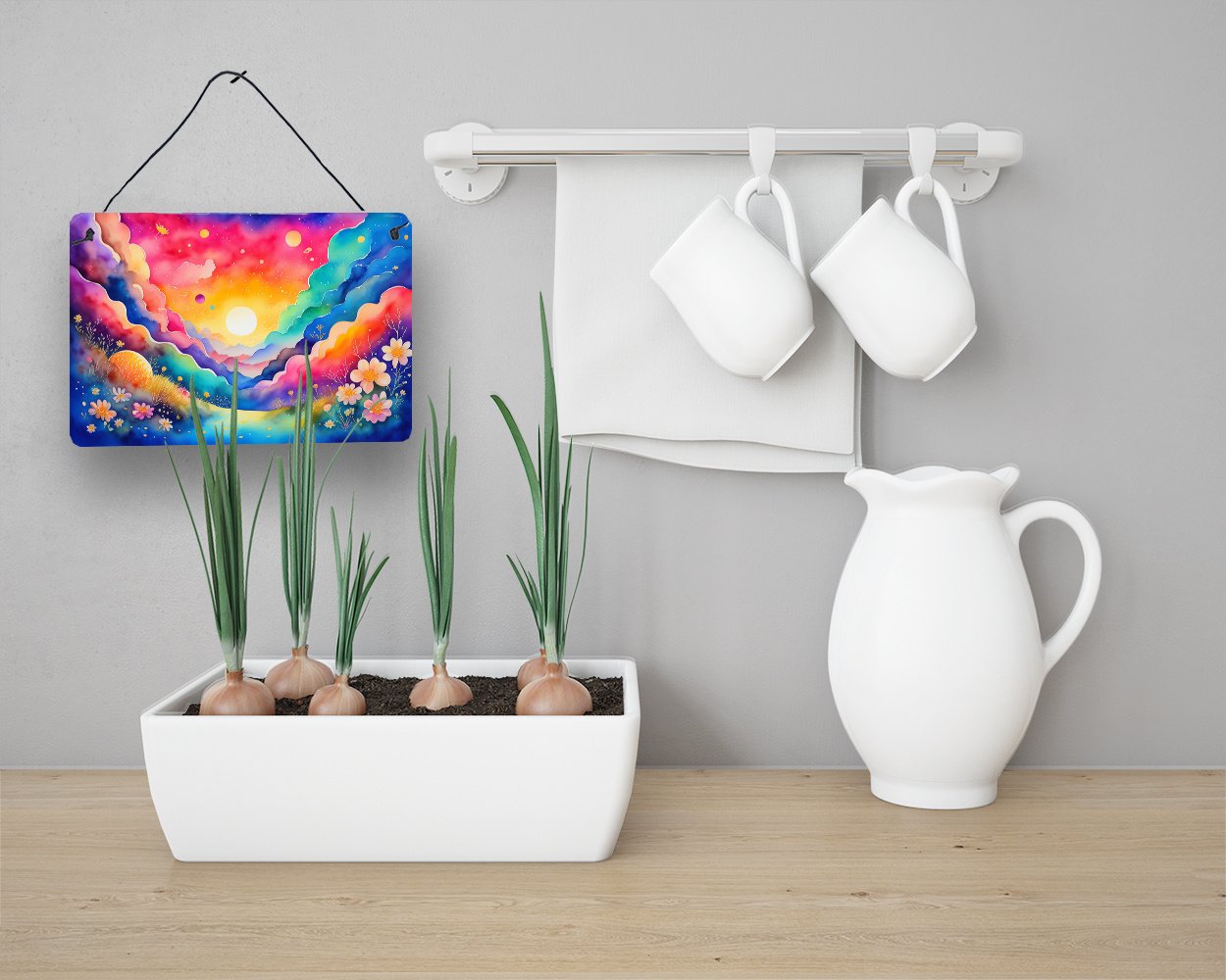 Add a splash of color and artistic flair to any indoor or outdoor space with our Aluminum Artwork Prints. These unique prints, featuring full-color, multicolor designs, provide a versatile decorative touch that can enhance a kitchen, bathroom, office, outdoor patio, or even the front door area. Each print measures 8 inches by 12 inches, making it the perfect size to catch the eye without overwhelming your space. Constructed with durability in mind, these prints can be placed outdoors and withstand direct sunlight for a significant amount of time before any fading begins. Designed for easy installation, each print features a black hanging rope and has a lightweight profile. This allows for quick hanging with just about any nail or screw. For safety and aesthetic appeal, the print's corners are gently rounded. The back of the print showcases a brushed silver color for an added touch of elegance. Rust and fade-resistant, these Aluminum Artwork Prints are not only beautiful but are also built to last. Elevate your space with these stunning prints, crafted with care and artistic passion.