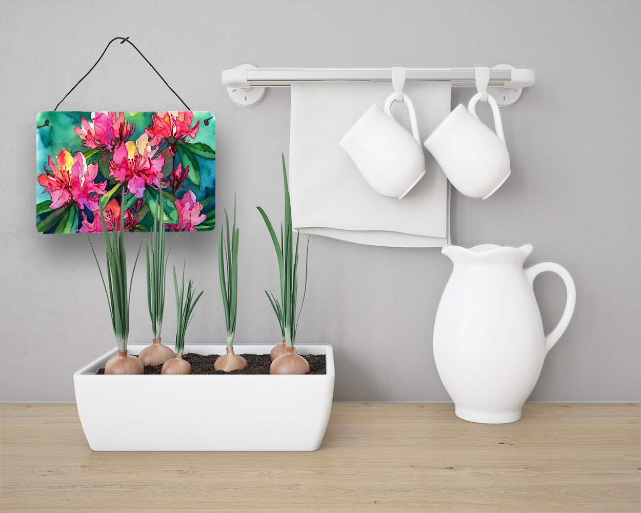 NEW West Virginia Rhododendrons in Watercolor Wall or Door Hanging Prints Aluminum Metal Sign Kitchen Wall Bar Bathroom Plaque Home Decor, 8HX12W