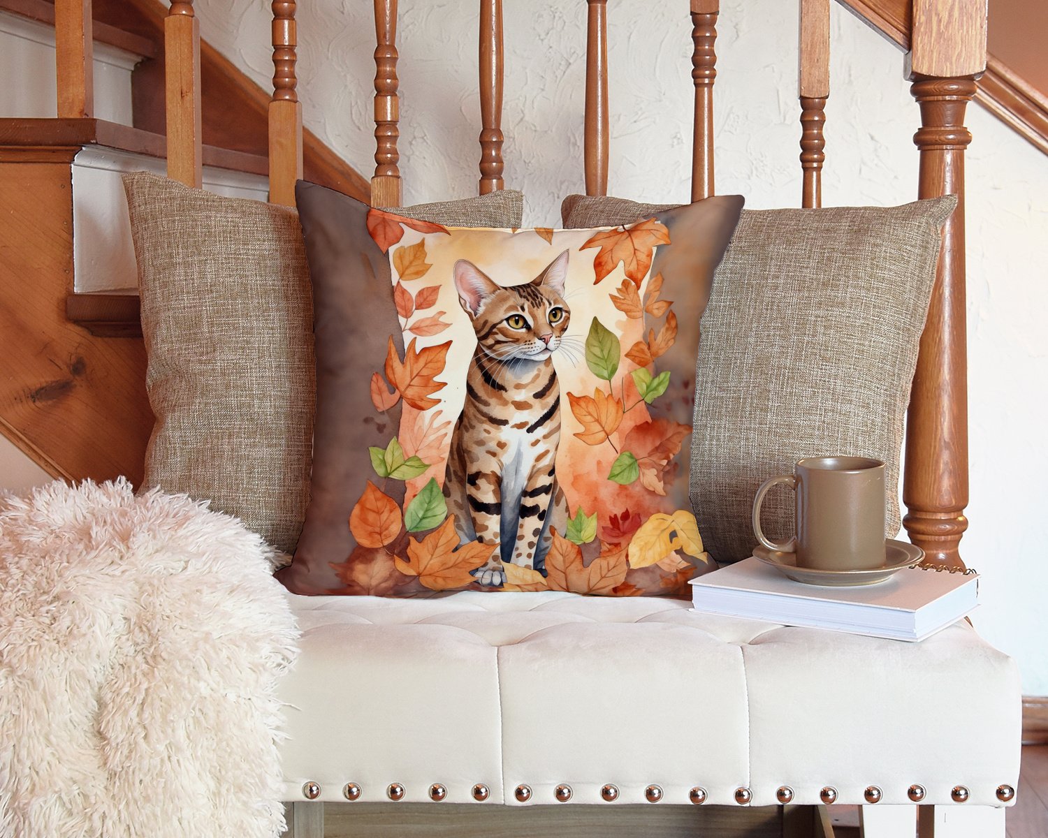 Ocicat Cat in Fall Leaves Throw Pillow Machine Washable, Indoor Outdoor Decorative Pillow for Couch, Bed or Patio, 14Hx14W