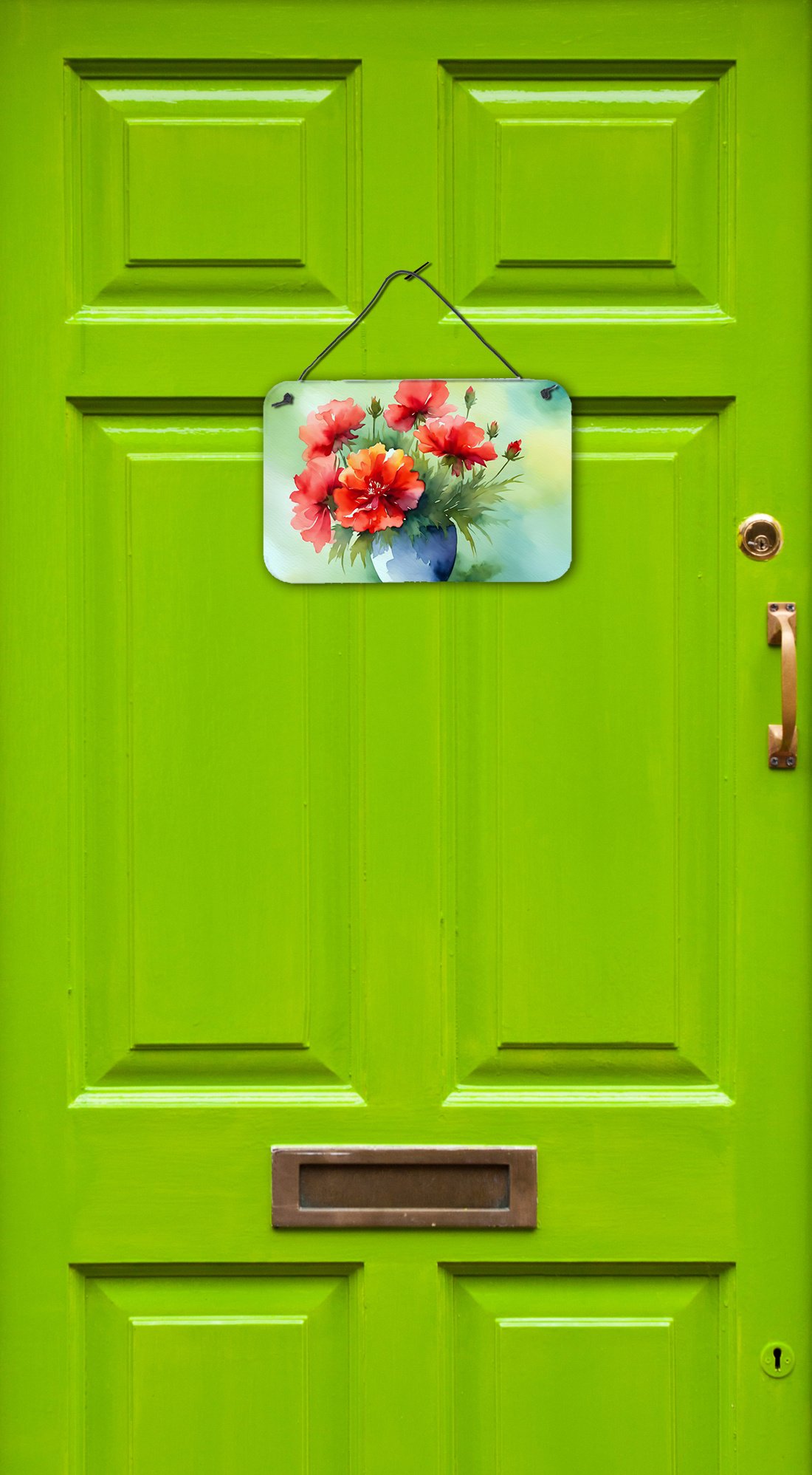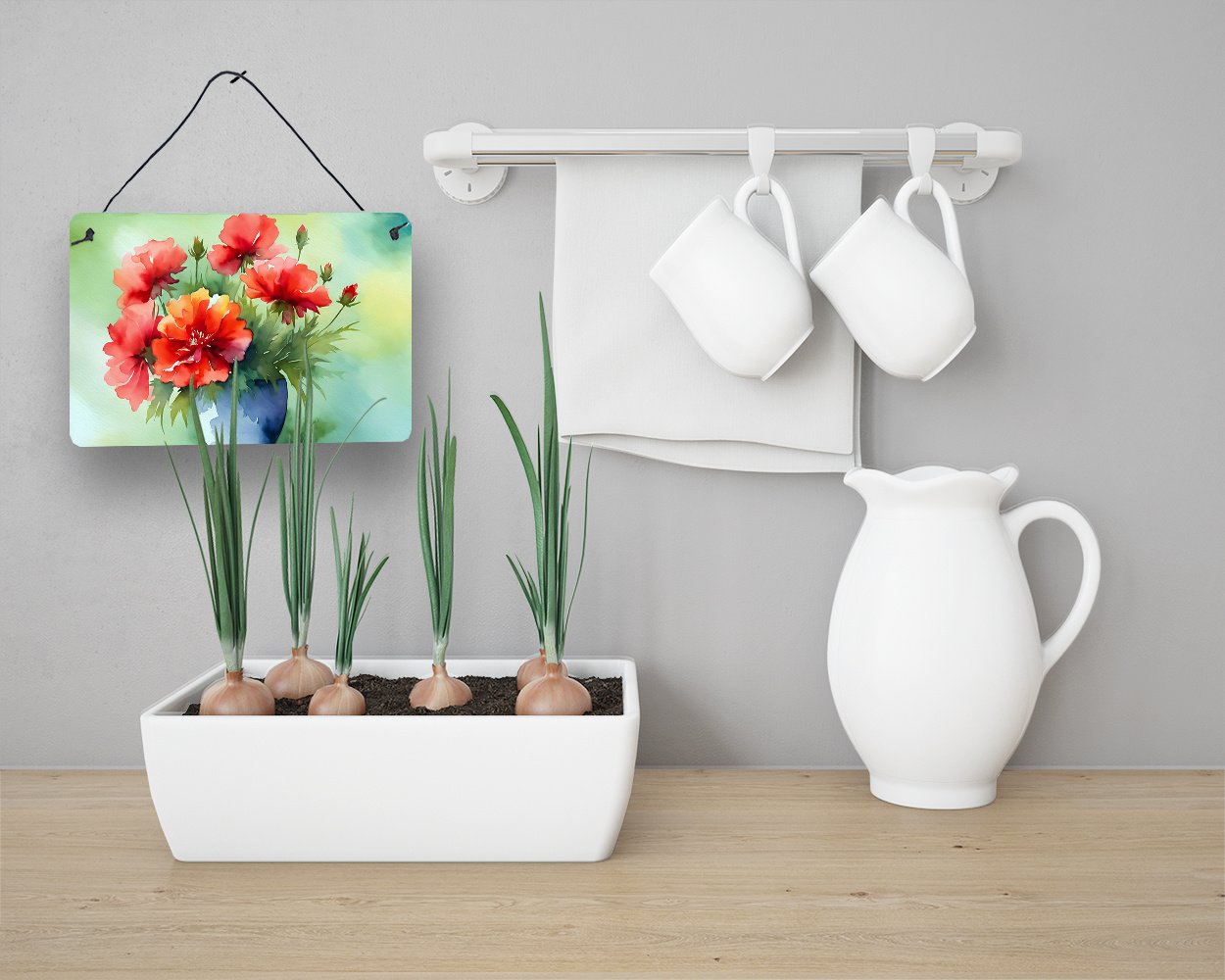 NEW Ohio Scarlet Carnations in Watercolor Wall or Door Hanging Prints Aluminum Metal Sign Kitchen Wall Bar Bathroom Plaque Home Decor, 8HX12W