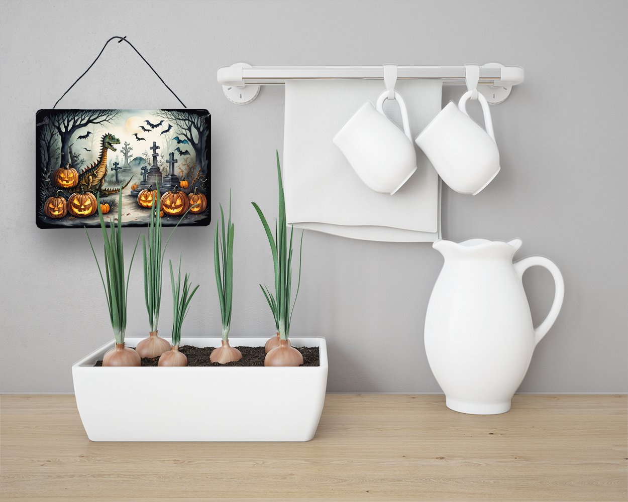 NEW Dinosaurs Spooky Halloween Wall or Door Hanging Prints Aluminum Metal Sign Kitchen Wall Bar Bathroom Plaque Home Decor, 8HX12W, Multicolor