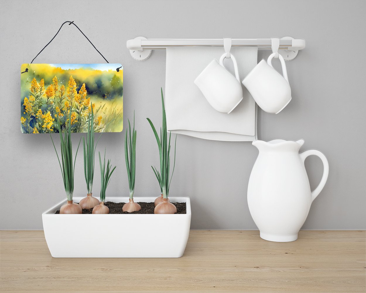 NEW Nebraska Goldenrod in Watercolor Wall or Door Hanging Prints Aluminum Metal Sign Kitchen Wall Bar Bathroom Plaque Home Decor, 8HX12W, Multicolor