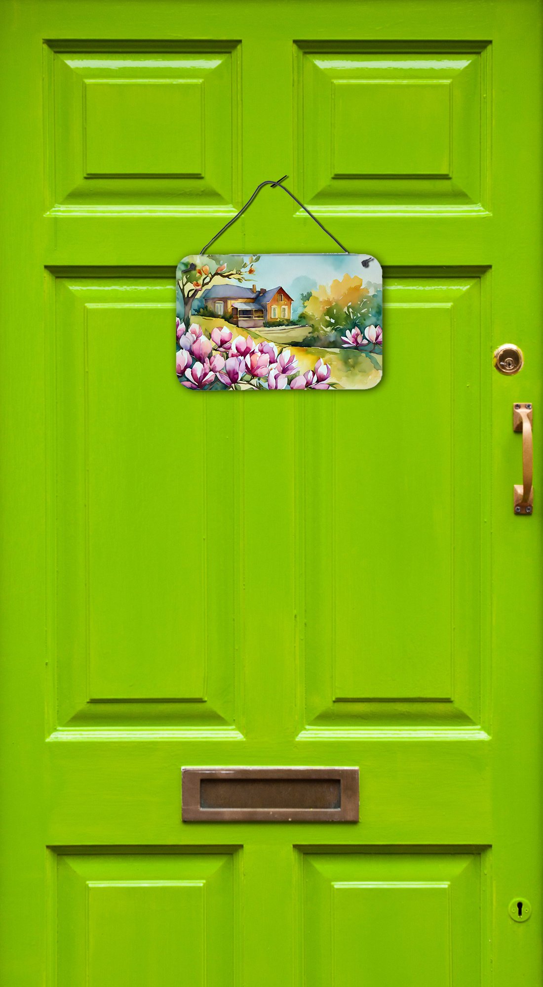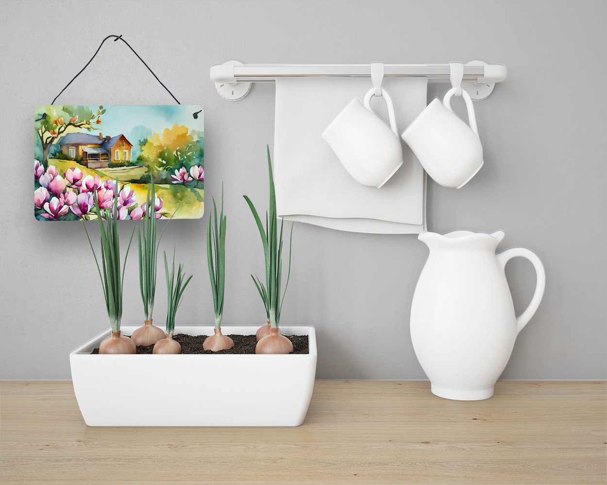 NEW Louisiana Magnolias in Watercolor Wall or Door Hanging Prints Aluminum Metal Sign Kitchen Wall Bar Bathroom Plaque Home Decor, 8HX12W, Multicolor