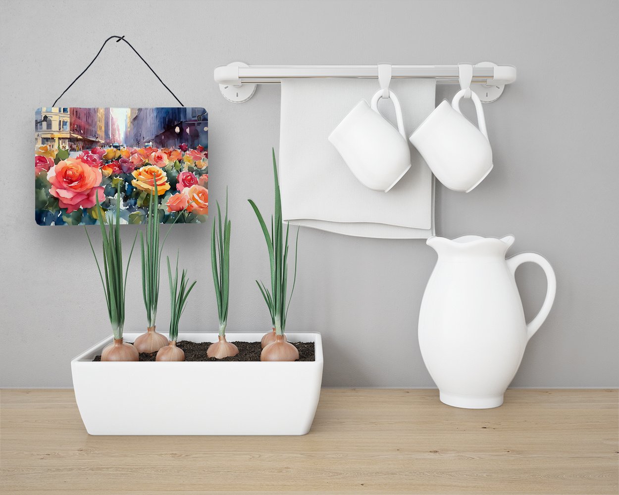 Home > NEW New York Roses in Watercolor Wall or Door Hanging Prints Aluminum Metal Sign Kitchen Wall Bar Bathroom Plaque Home Decor, 8HX12W, Multicolor