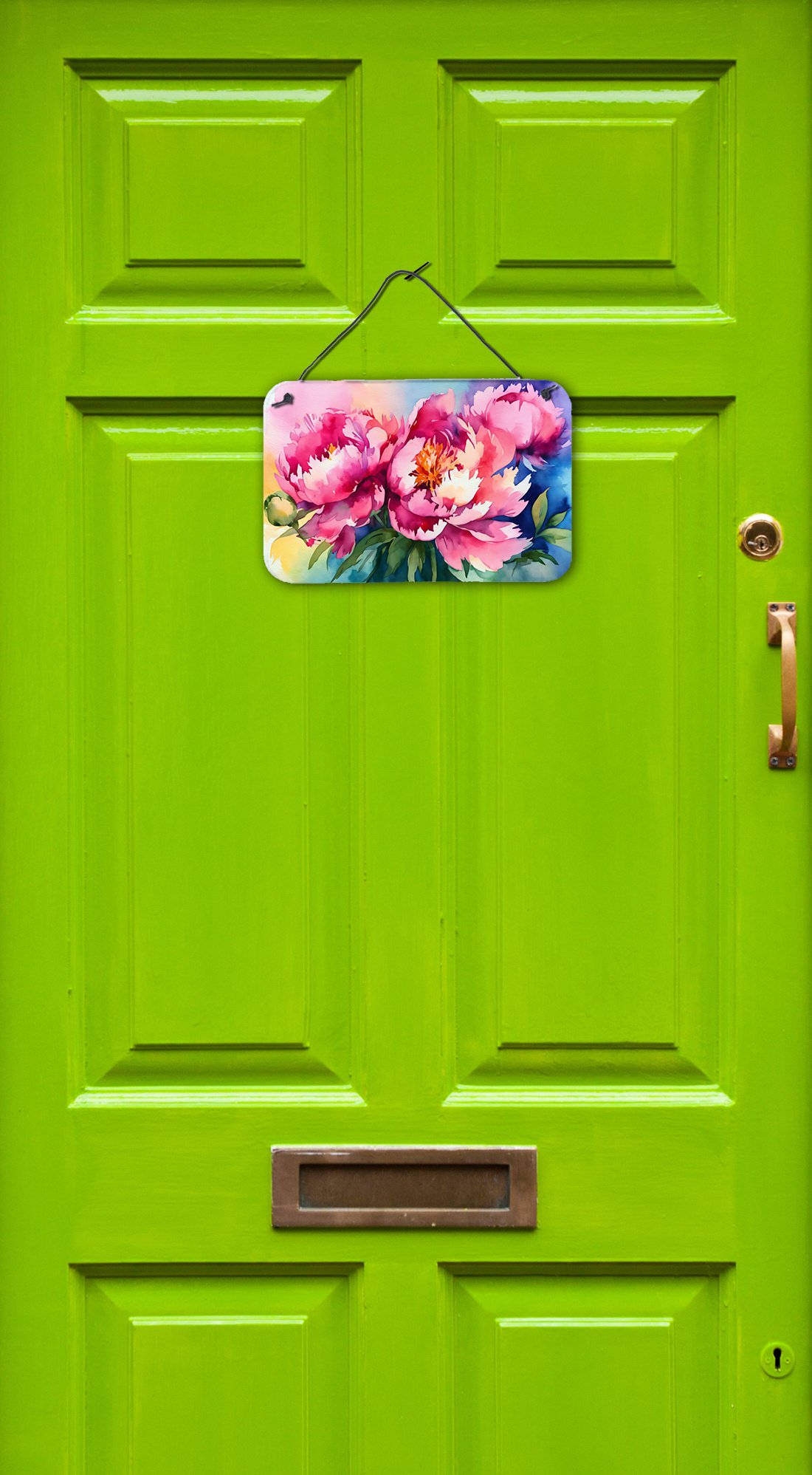 NEW Peonies in Watercolor Wall or Door Hanging Prints Aluminum Metal Sign Kitchen Wall Bar Bathroom Plaque Home Decor, 8HX12W, Multicolor