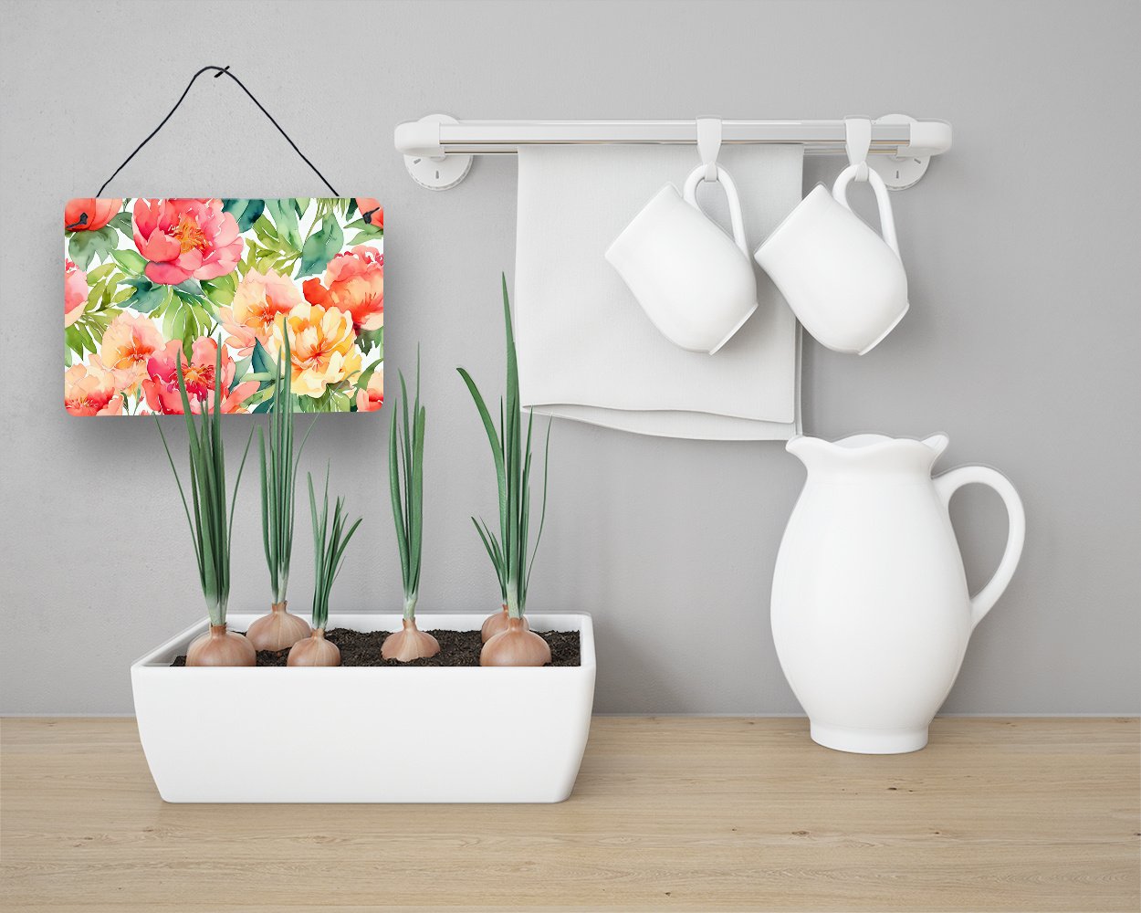 NEW Indiana Peonies in Watercolor Wall or Door Hanging Prints Aluminum Metal Sign Kitchen Wall Bar Bathroom Plaque Home Decor, 8HX12W, Multicolor