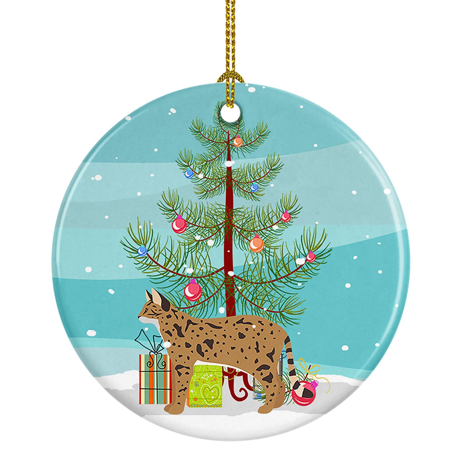 Ceramic Ornament featuring breed specific Savannah artwork. Celebrate Christmas with this Christmas Ornament. This Ceramic Ornament is from Caroline's Treasures collection Merry Christmas Tree. Add a touch of personalized charm to your Christmas tree this holiday season with our Ceramic Ornament. Measuring 2.8125 inches in diameter, this round porcelain ornament beautifully reflects your festive lights, enhancing your holiday decor. The gloss surface sets off the vibrant, full-color artwork contributed by one of our talented artists, bringing a pop of color and joy to your tree. This Ceramic Ornament doesn't stop at being merely decorative. The white back is designed for personalization. Write a heartfelt message, mark a special year, or inscribe a date with a paint pen or a permanent marker to create a treasured memento. Please ensure you allow any personalization to dry thoroughly before handling to maintain the pristine finish. Included with the ornament is a delicate gold cord for easy hanging. Made in the USA, this Ceramic Ornament makes an exceptional gift for a pet sitter, teacher, family member, or anyone you wish to share a little Christmas magic with. With its blend of style, charm, and personal touch, it's a meaningful addition to any Christmas tree. This Ornament is from Caroline's Treasures Cats category of products.