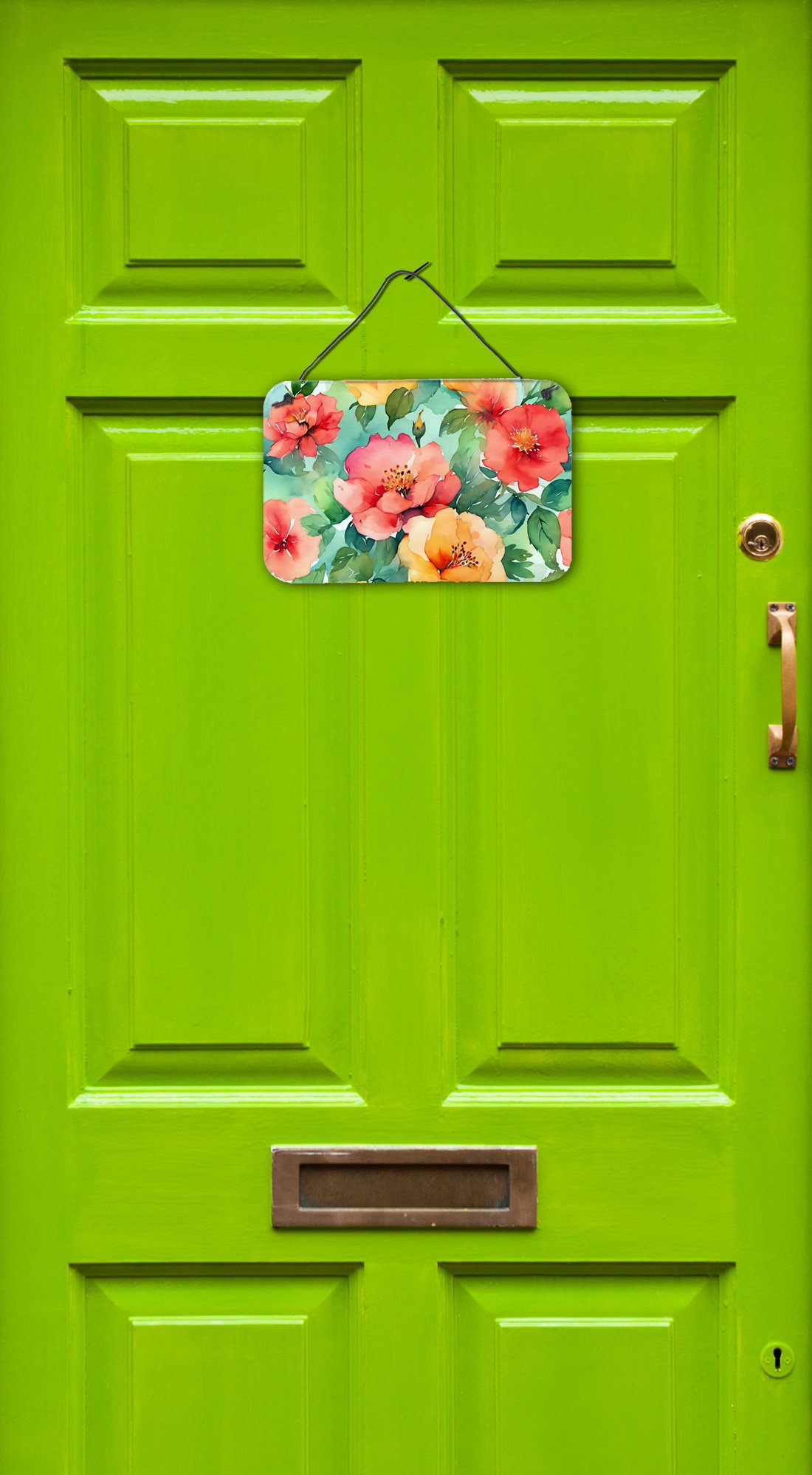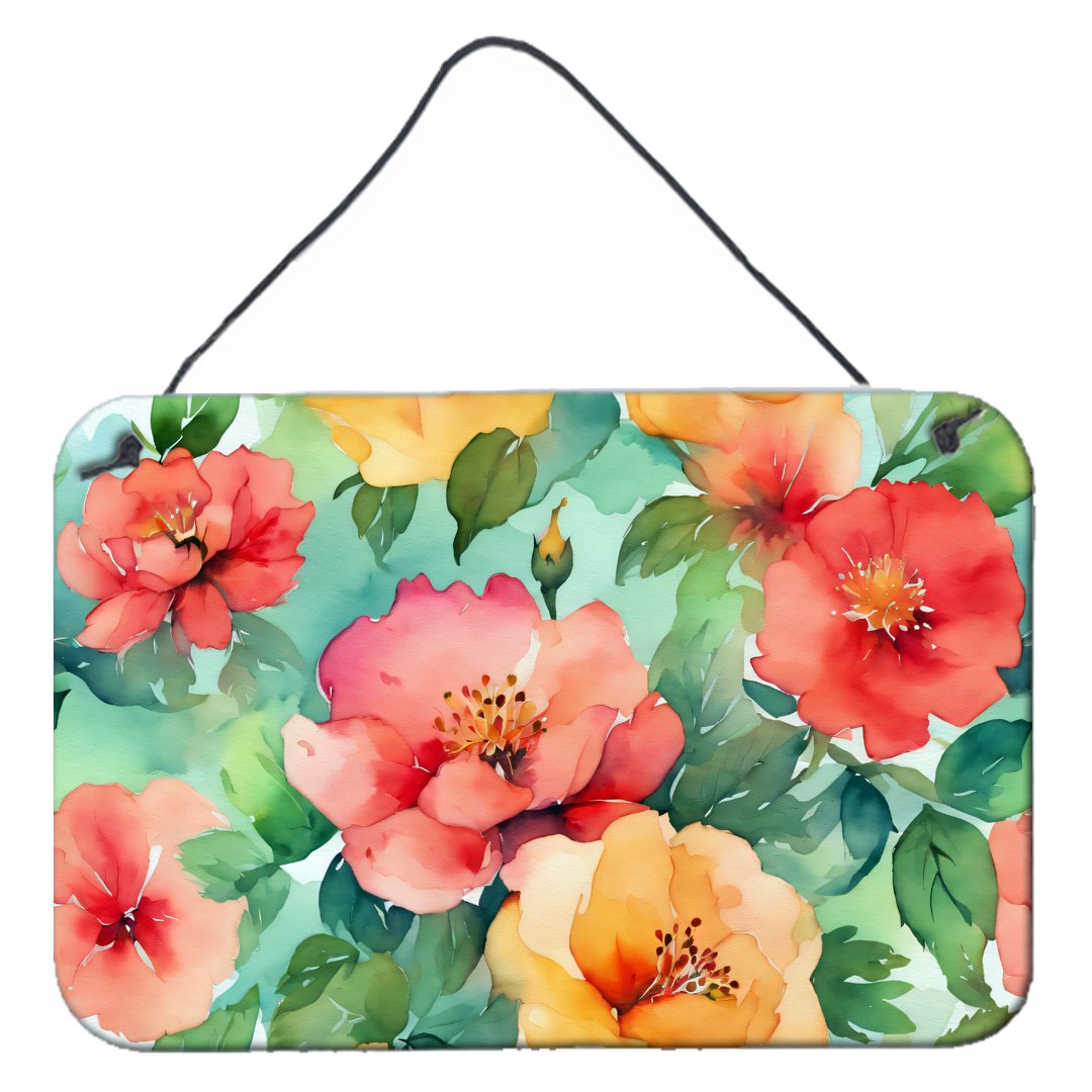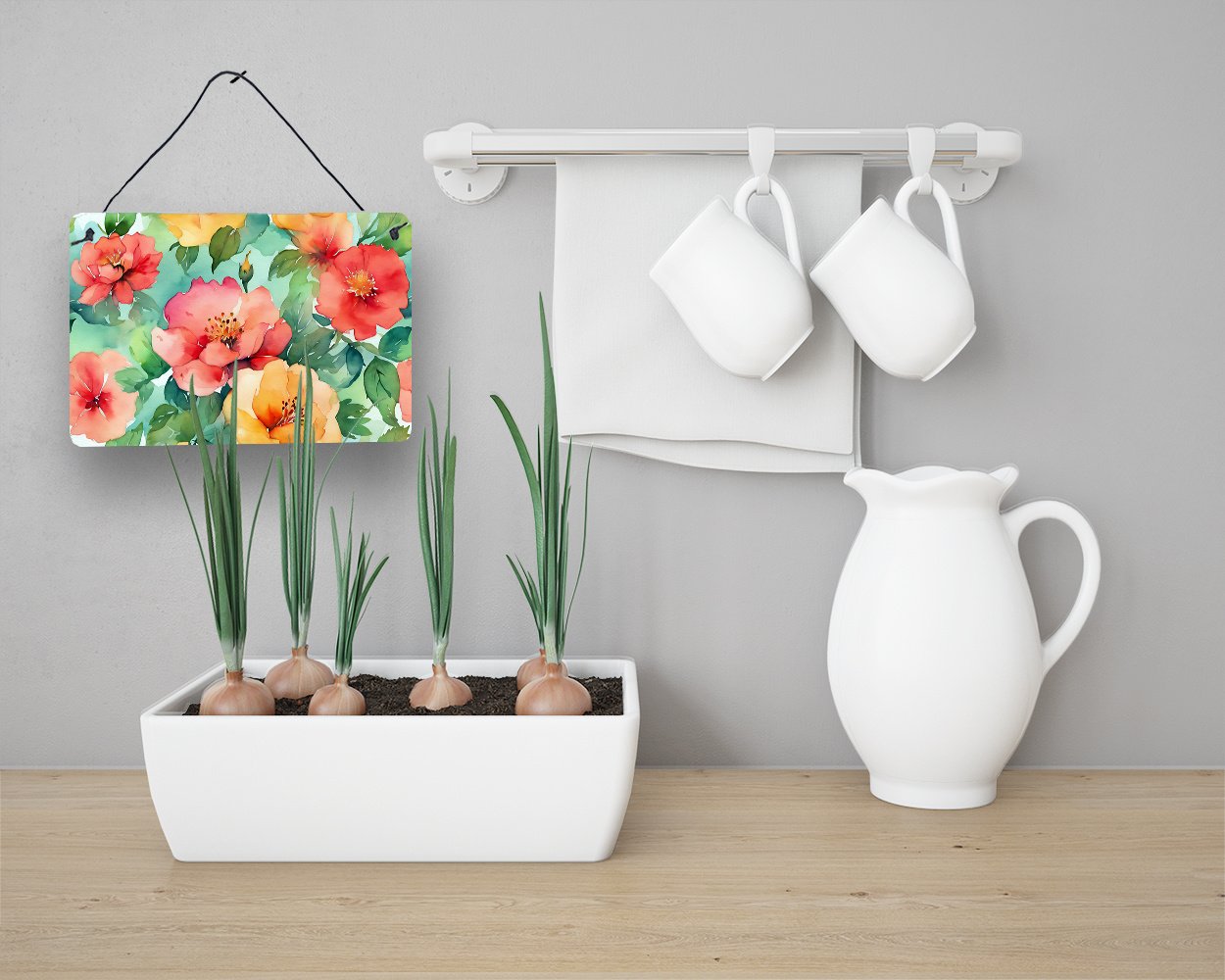 NEW Georgia Cherokee Rose in Watercolor Wall or Door Hanging Prints Aluminum Metal Sign Kitchen Wall Bar Bathroom Plaque Home Decor, 8HX12W