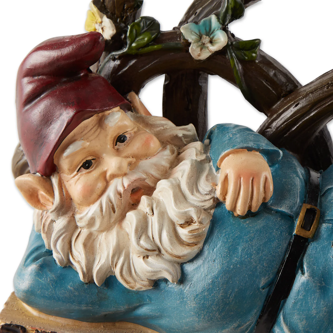 • A sunny day, a charming bench, and a bright bluebird is everything this adorable gnome needs to take a sweet snooze. The solar panel soaks up the sun by day and makes the bluebird light up at night.