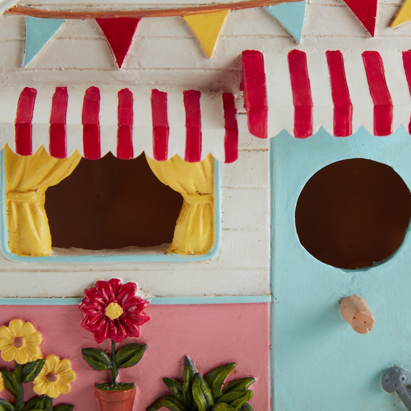 • Made from polyresin and hand painted to create a decorative home for your feathered friends.